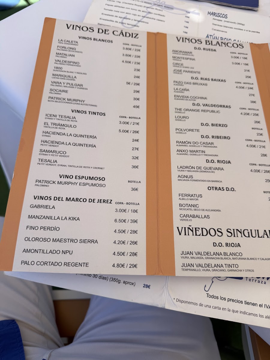 The Espárragos (asparagus) dish provides a delicate, vegetal counterpoint to the rich seafood offerings, while the Seviche is a must-try for fans of citrus-infused raw seafood. Navajas (razor clams) and Coquinas are perfect for seafood lovers seeking fresh, tender shellfish, and the Atún Marinado Con Salsa de Miel Y Mostaza is a creative dish where tuna is marinated and paired with a honey-mustard sauce for a sweet and savory contrast.
