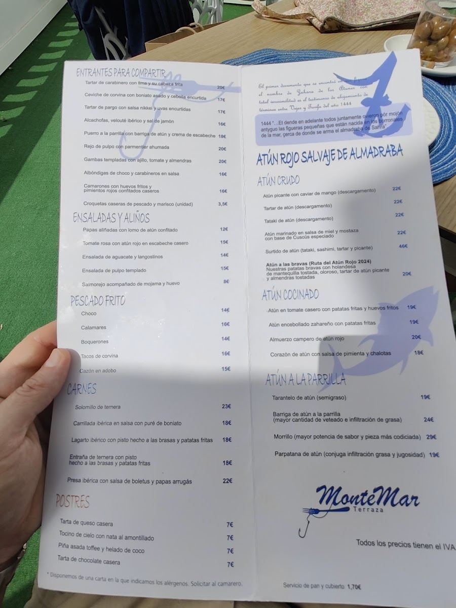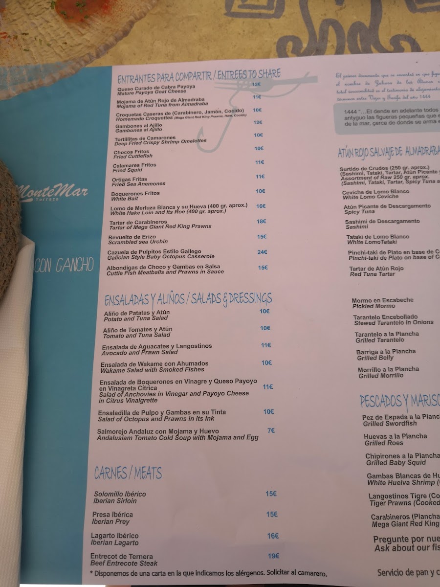 The menu at Restaurante Terraza Monte-Mar in Zahara de los Atunes offers an impressive selection of dishes that reflect the richness of local Andalusian cuisine. Among the standout options is the Tartar de Carabineros, a delightful seafood dish that combines the fresh, sweet flavors of the Carabineros shrimp with a delicate preparation. Equally remarkable is the Tartar de Atún Rojo, featuring premium red tuna that is a true testament to the quality of the ingredients.